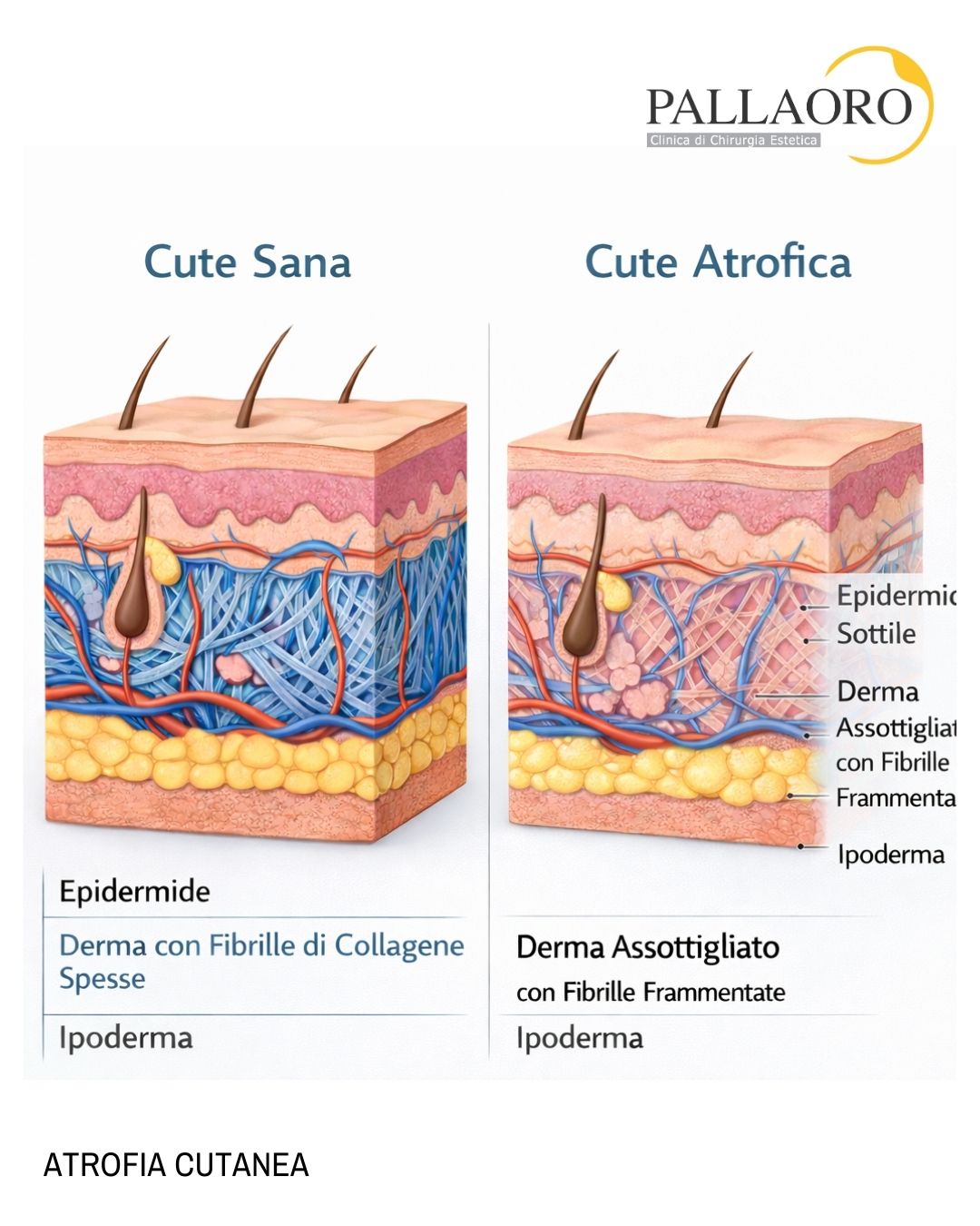 L’anatomia della pelle subisce cambiamenti strutturali con l’età: il derma si assottiglia e perde la sua capacità di trattenere acqua. Questo porta alla perdita di aderenza tra i vari strati cutanei, causando lo scivolamento dei tessuti verso il basso e la formazione di rughe e solchi.